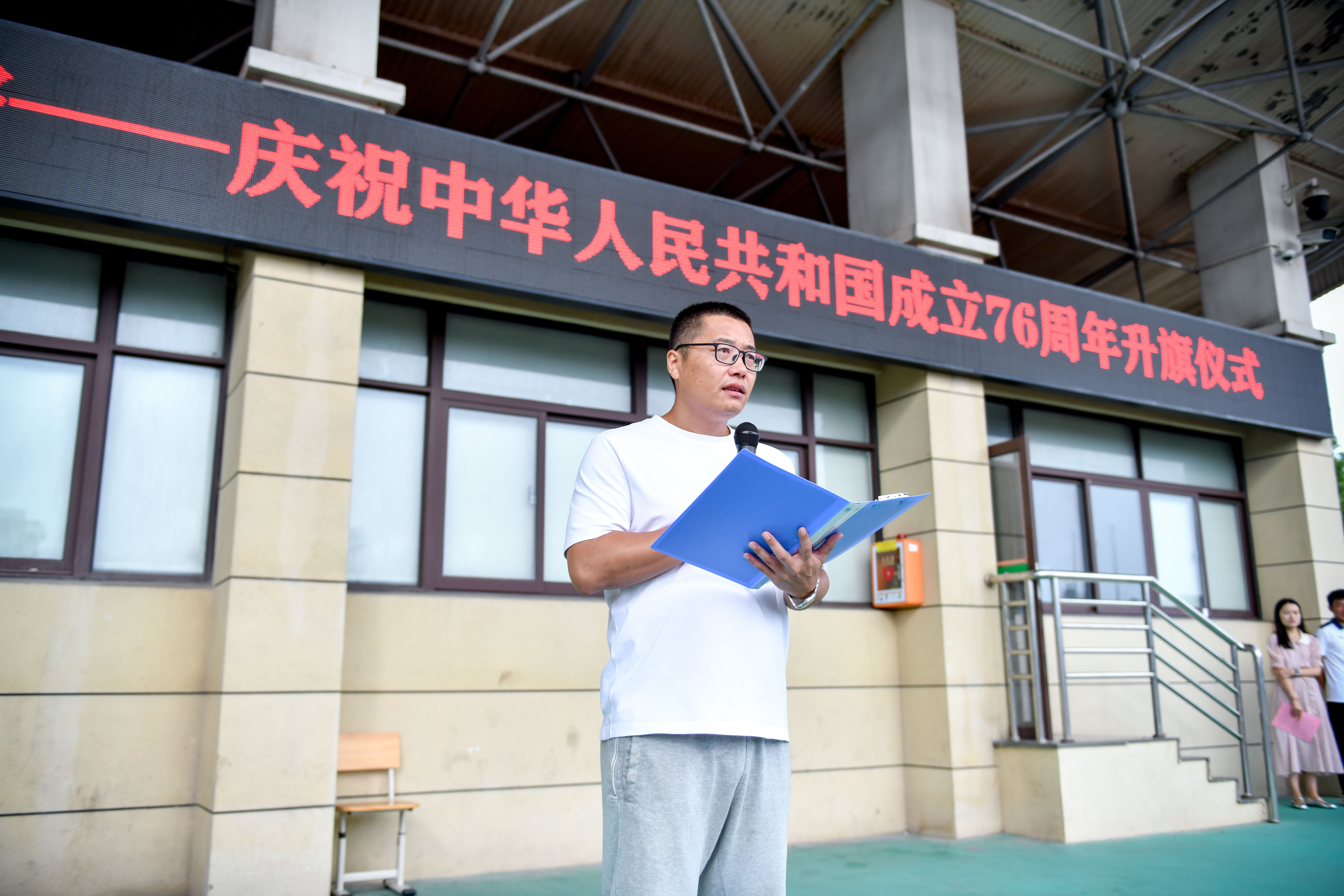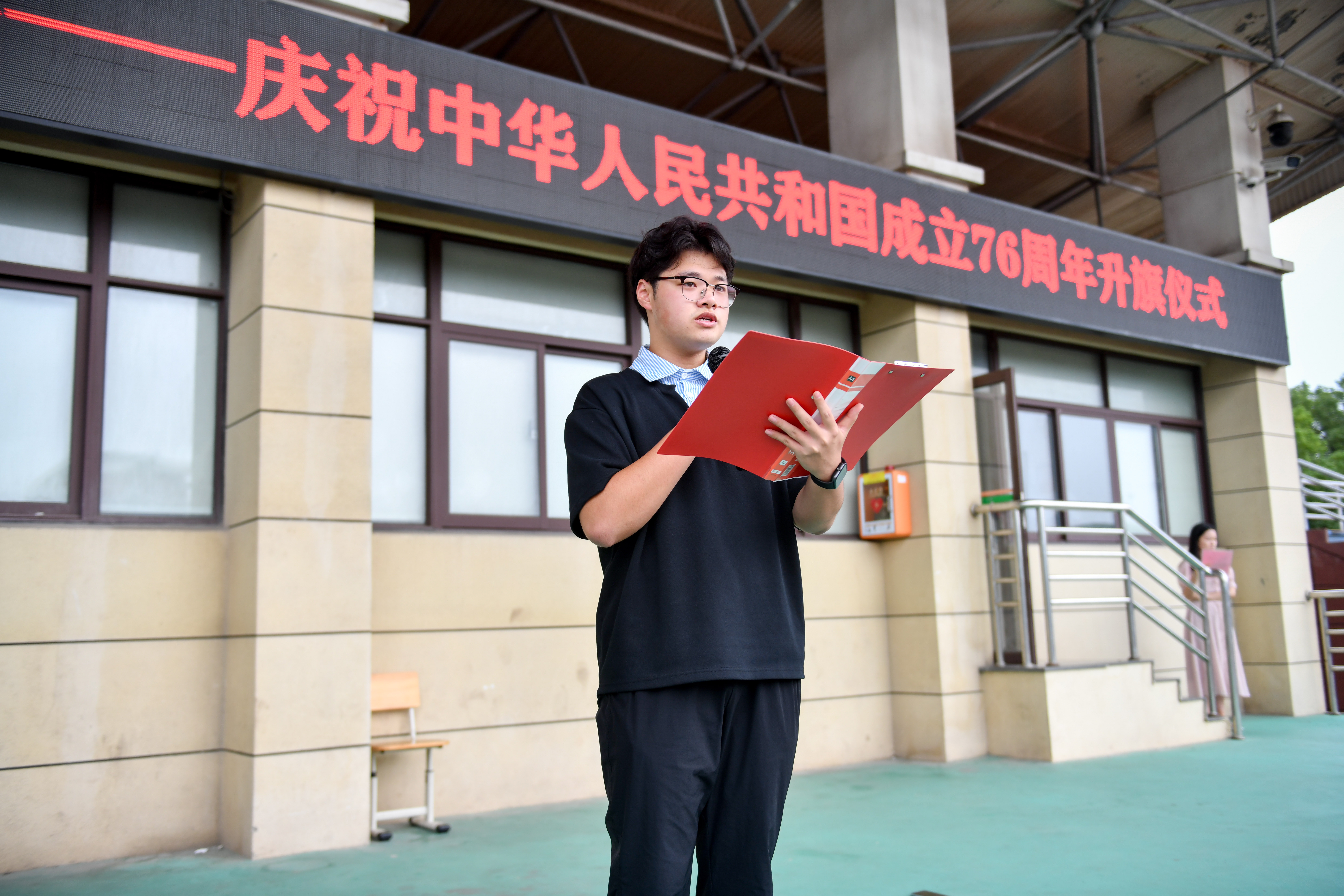 9月30日清晨,在中华人民共和国成立76周年即将到来之际,我校全体学生齐聚北区操场,隆重举行升国旗仪式。仪式由校团委书记罗茜主持。