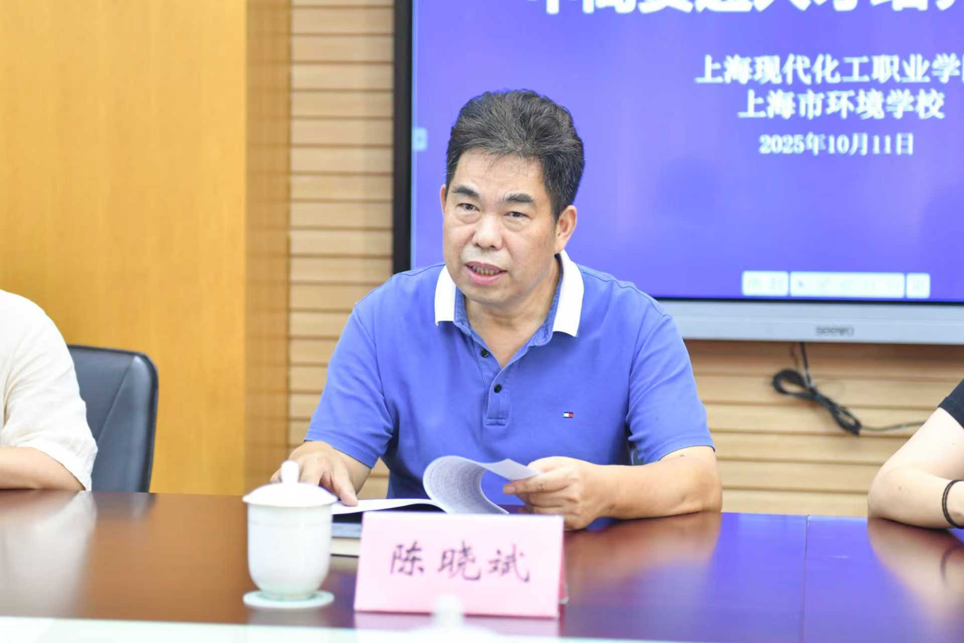 10月11日上午,上海市环境学校校长曹美琴一行3人来访我校,就分析检验技术中高职贯通培养进行交流洽谈。校长陈晓斌等校领导及相关部门负责人、工作小组成员出席会议,双方围绕专业建设、课程衔接与资源共享等议题深入研讨。