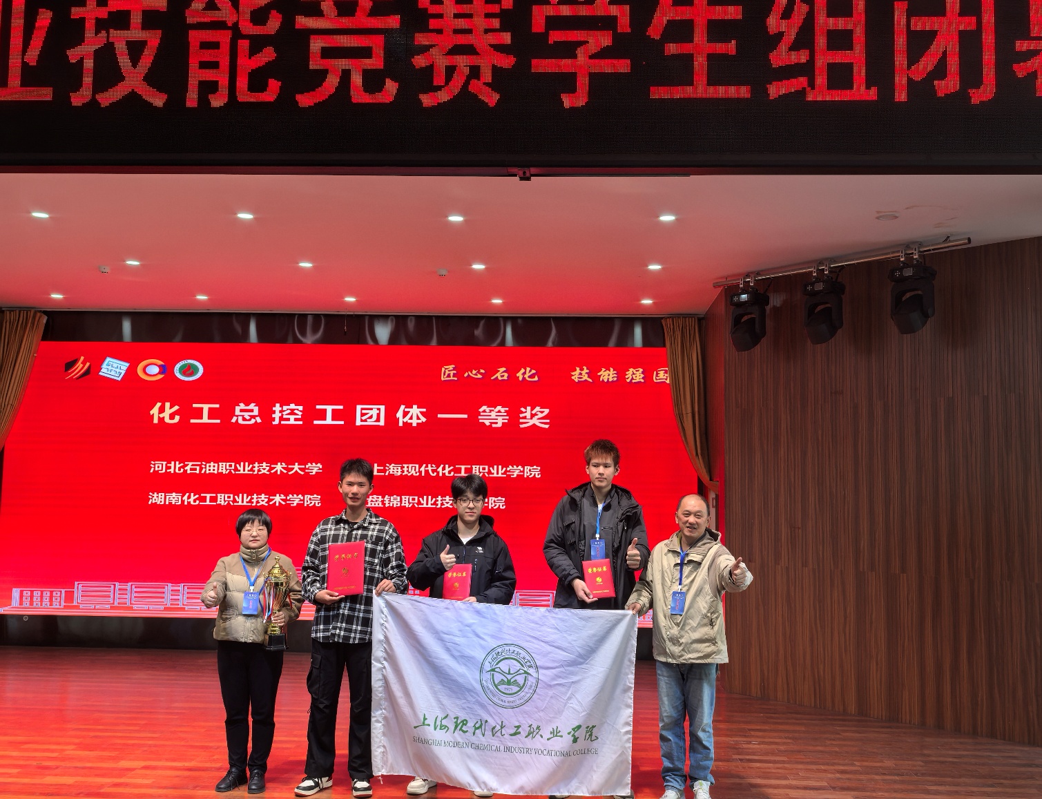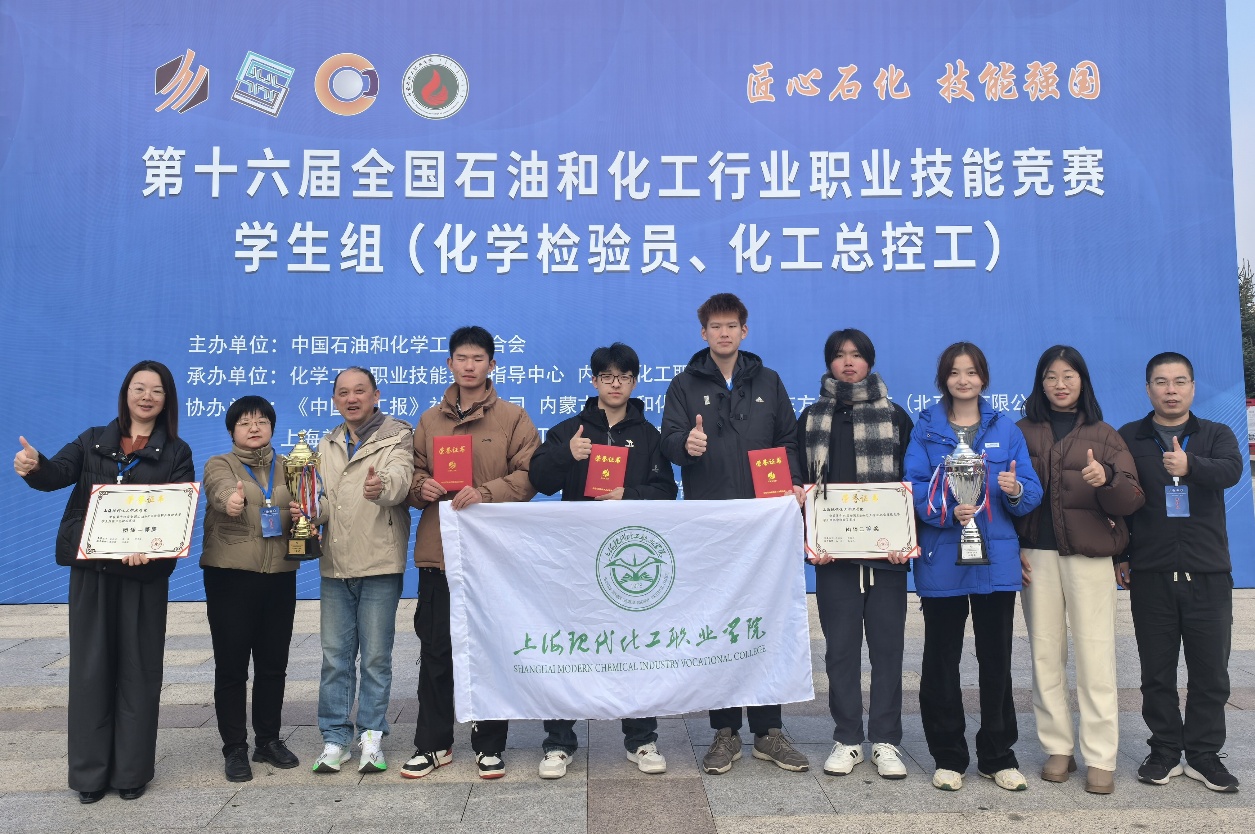 10月21日-24日,由中国石油和化学工业联合会主办,化学工业职业技能鉴定指导中心、内蒙古化工职业学院承办的第十六届全国石油和化工行业职业技能竞赛学生组决赛在内蒙古化工职业学院举办。我校化学工程学院化工总控工参赛团队获得团体一等奖,化学检验员参赛团队获得团体二等奖。化工总控工三名选手同时获得个人奖项,其中詹景泽获个人银奖,陈浩、李东洋获个人铜奖。