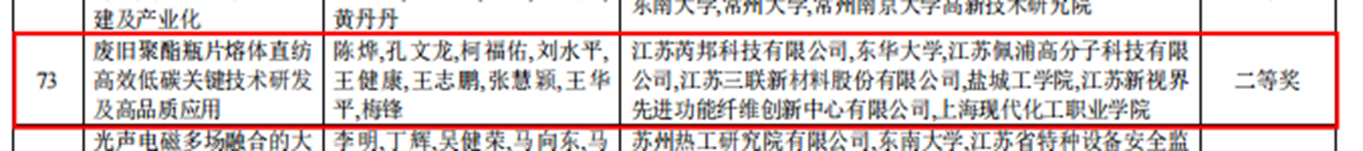 10月23日,2024年度江苏省科技进步奖(通用项目)综合评审项目名单公布。由上海现代化工职业学院作为重要参与单位、化学工程学院张慧颖老师作为主要参与人之一的“废旧聚酯瓶片熔体直纺高效低碳关键技术研发及高品质应用”项目,荣获江苏省科技进步二等奖。这是我校首次获得省部级科技大奖,实现了零的突破。