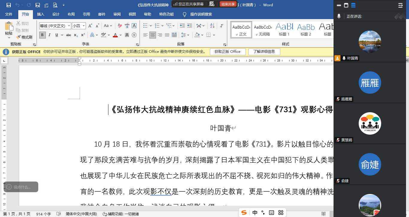 本次观影活动选取了揭露侵华日军731部队罪行、警示世人珍爱和平的影片《731》,以及展现志愿军将士保家卫国、不畏强敌、浴血奋战的史诗巨制《志愿军3:浴血和平》。两个党小组全体党员均积极参与了观影。