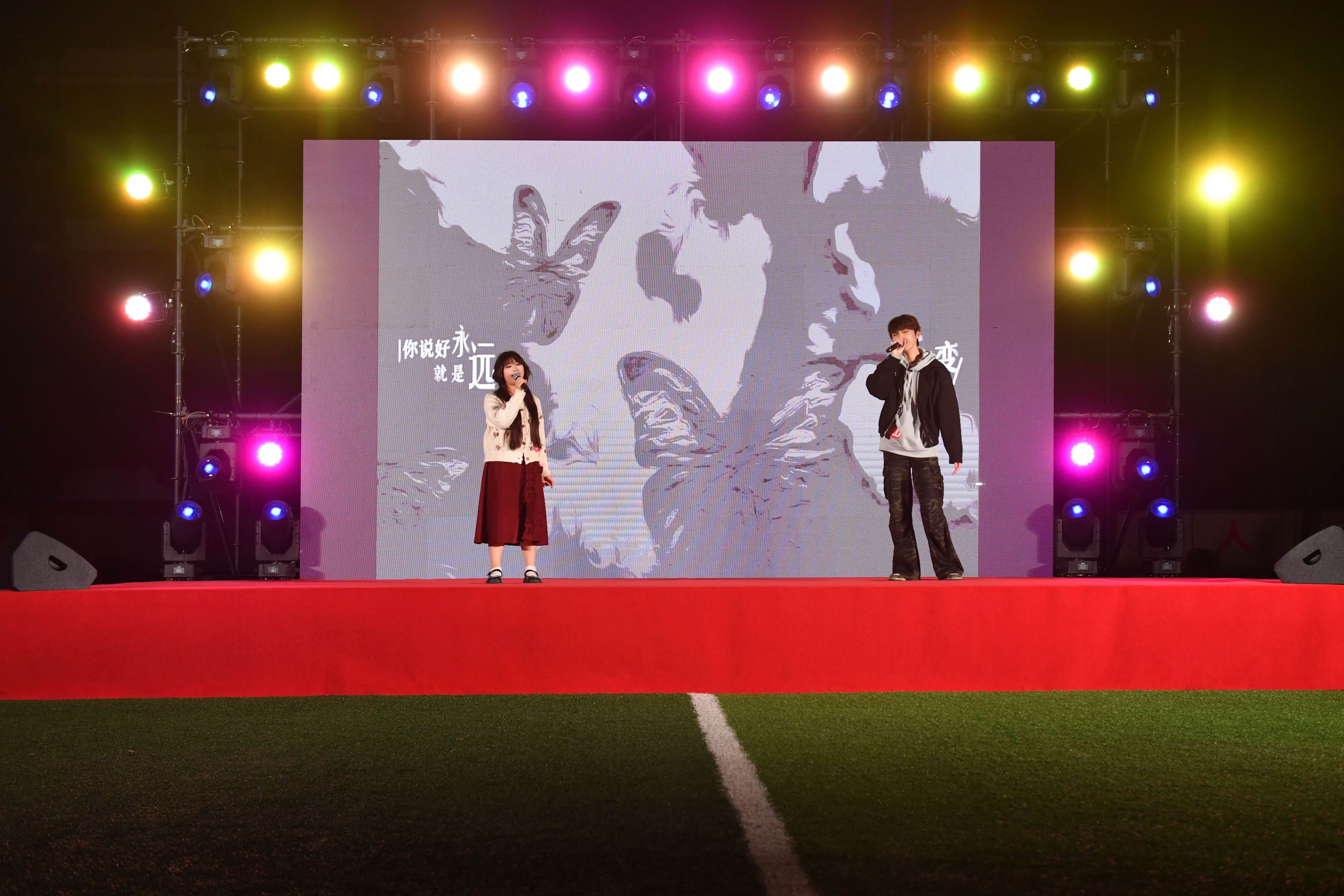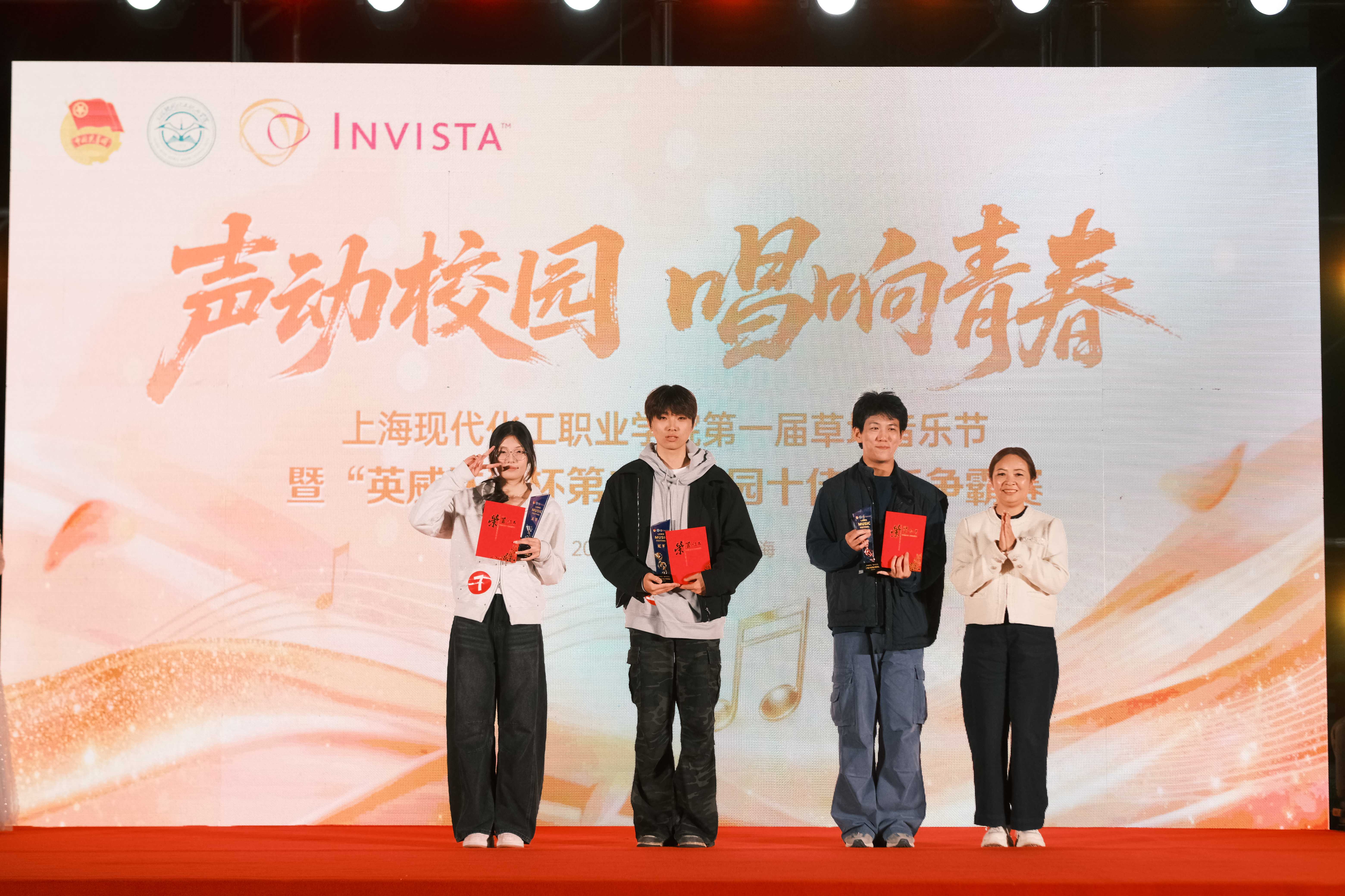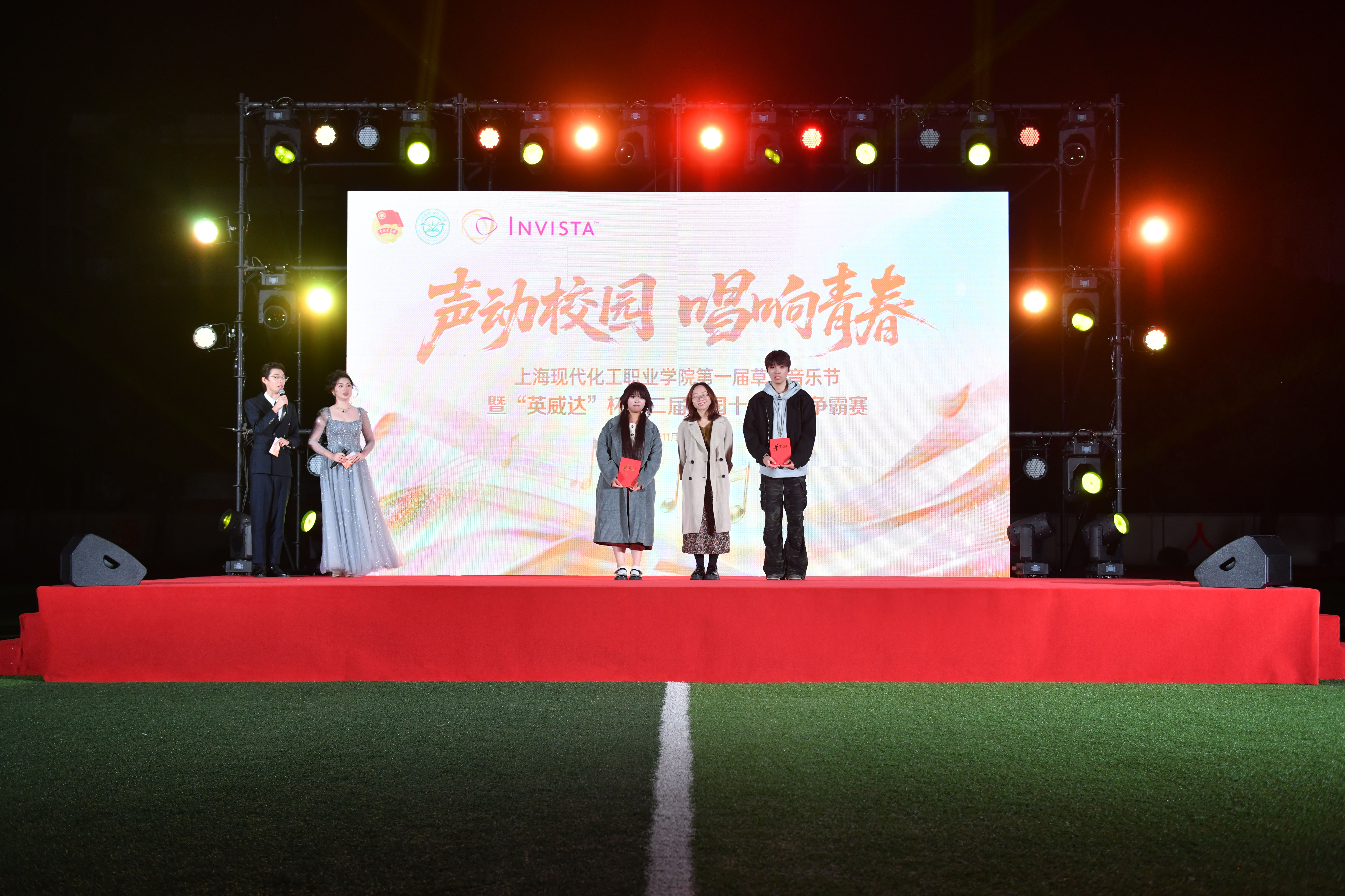 浪潮奔涌,激荡青春能量;C位舞台,点亮无限可能。11月11日晚,我校在北区操场举行第一届“草坪音乐节”暨“英威达”杯第二届“校园十佳歌手争霸赛”。校党委书记高炬、副校长严小丽、英威达人力资源部专员张心虹等学校和企业领导应邀出席。大赛特邀上海戏曲学校专业教师陆杨和周海莎以及上海中侨职业技术大学团委副书记薛飞作为校外专业评委。经过前期层层选拔,十位实力唱将脱颖而出,站上了决赛的舞台,为现场观众带来了一场无与伦比的视听盛宴。