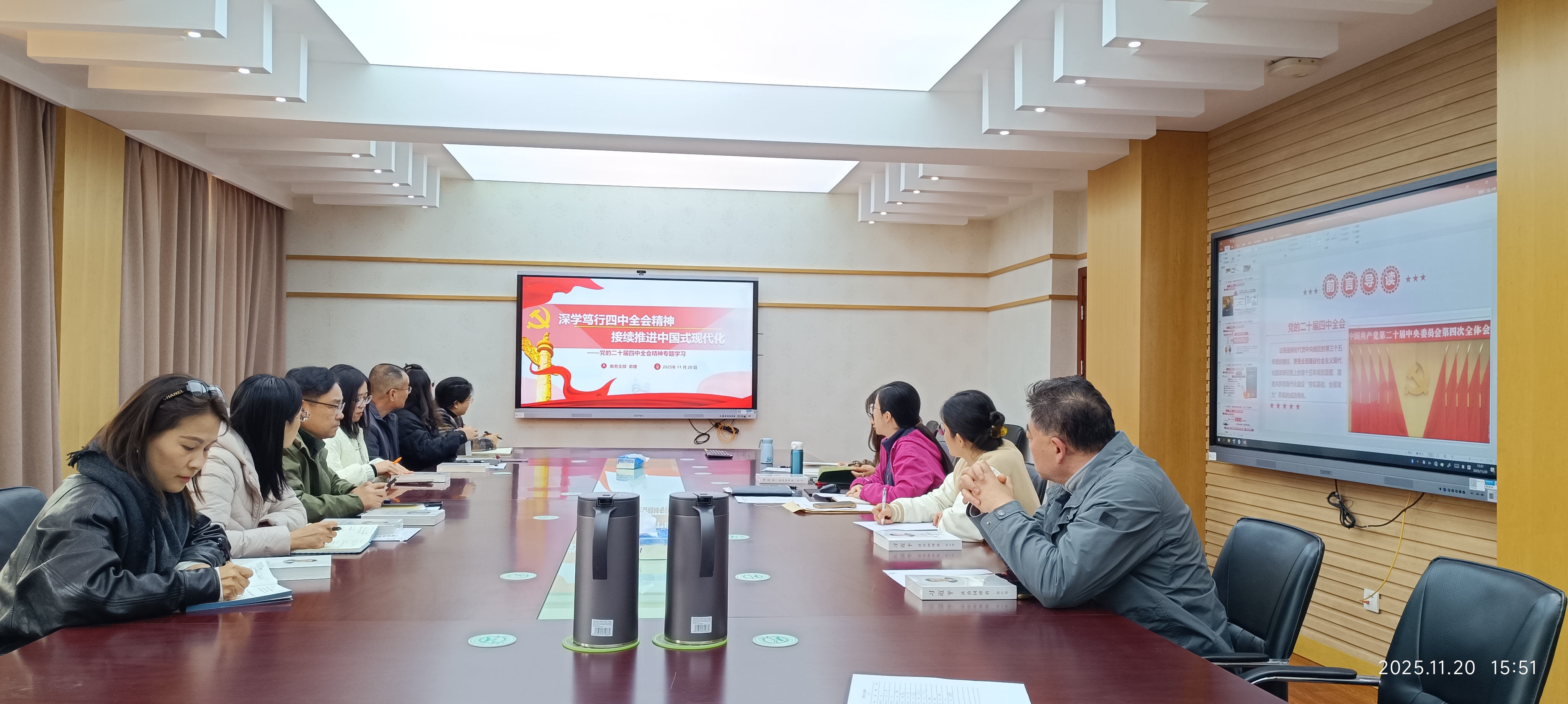 为深入学习领会、全面准确把握党的二十届四中全会精神的丰富内涵与核心要义,引导全体党员切实把思想和行动统一到党中央的决策部署上来,11月20日下午,教务系统党支部组织开展了贯彻学习党的二十届四中全会精神主题党日活动。