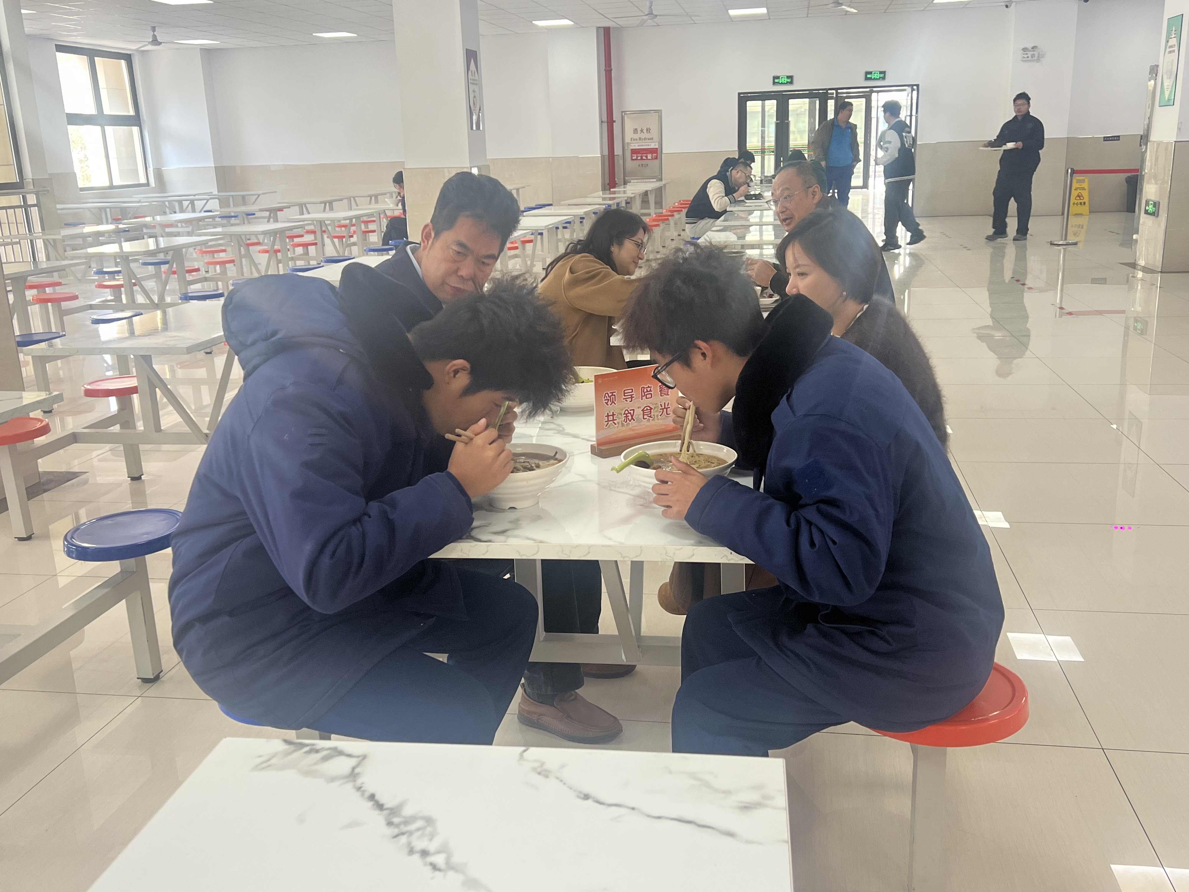 在就餐区,陈晓斌与同学们同桌就餐,开展交流,详细询问大家对菜品种类、质量、口味、价格及服务的真实感受以及日常就餐中遇到的问题,认真听取同学关于菜品创新、窗口设置和食品安全监督的新点子,并现场指示相关负责人对合理诉求逐项落实整改,让“领导陪餐”吃出门道、吃出安心。