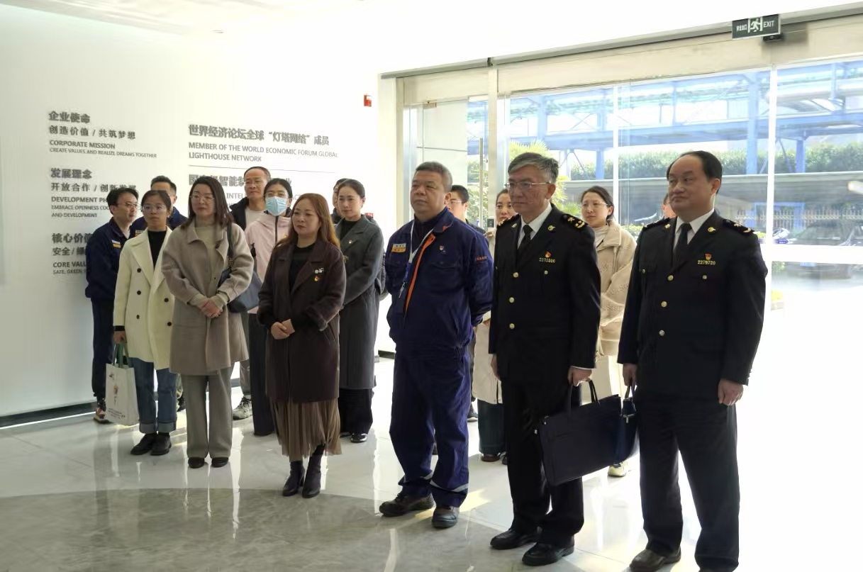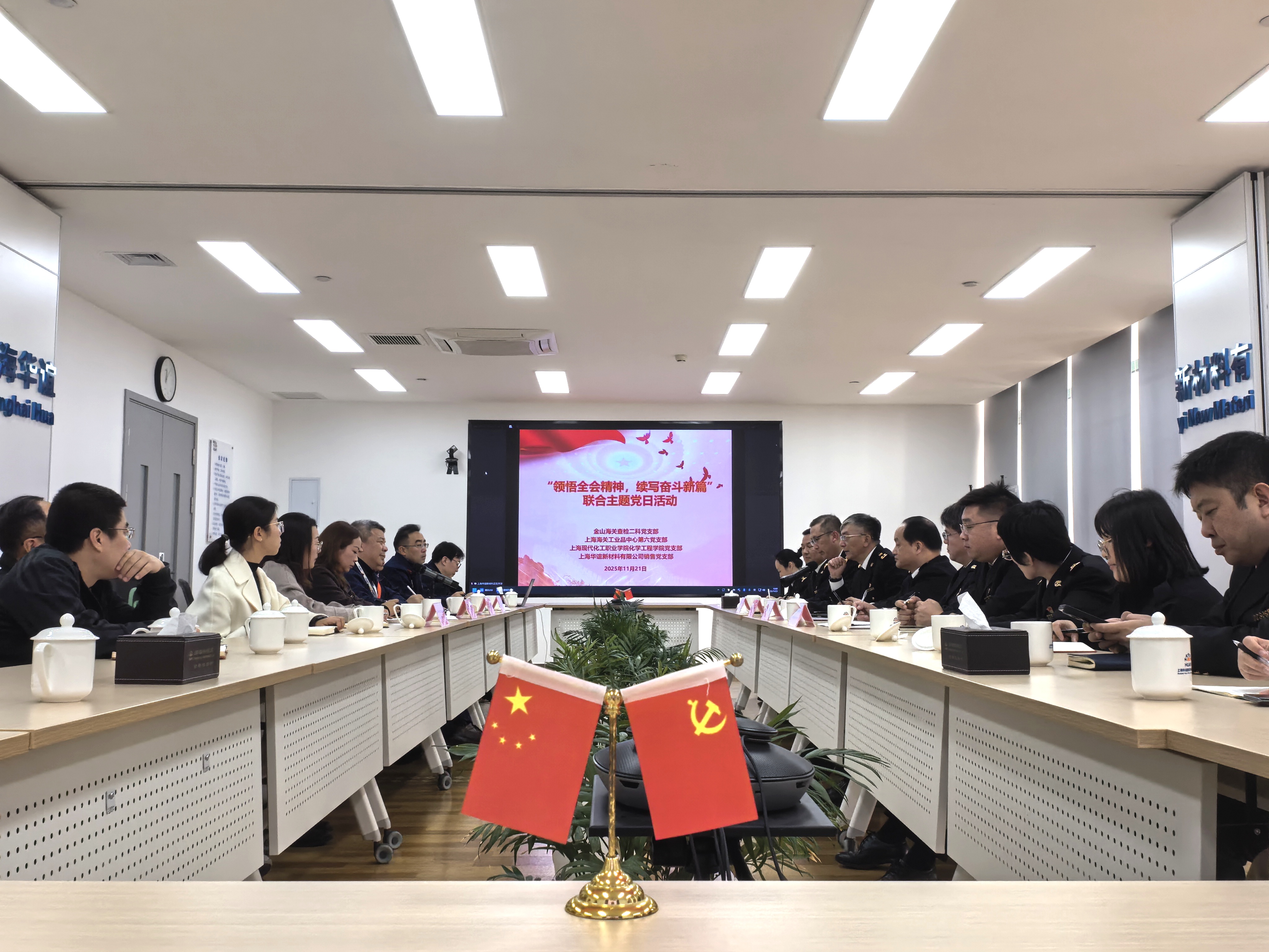 为深入学习贯彻中国共产党第二十届中央委员会第四次全体会议精神,联合“政、企、学”优势资源,强化党员政治引领,深化党建与业务融合,为助推“十五五”时期地方化工产业高质量发展凝聚合力,11月21日,我校化学工程学院党支部与金山海关查检二科党支部,上海海关工业品中心第六党支部以及上海华谊新材料有限公司销售党支部开展联合主题党日活动。活动在上海华谊新材料公司有限公司生产基地隆重举行,我校党委委员、副校长严小丽,化学工程学院党支部书记胡迪君,化学工程学院院长杨辽原以及化学工程学院党员教师代表共同参加了此次内容丰富、形式创新的联学共建活动。