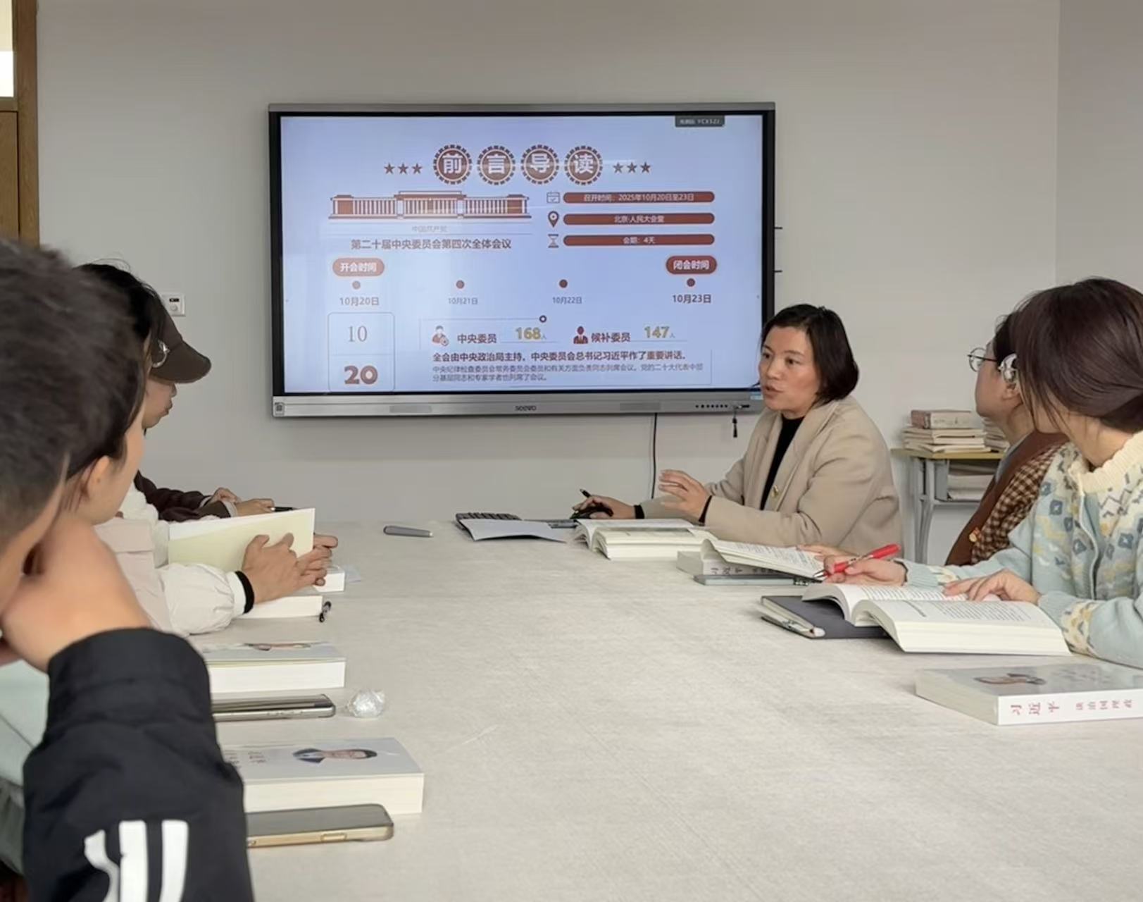 会议首先组织全体党员围绕贯彻落实党的二十届四中全会精神进行了专题学习。支部书记于燕娜为党员们详细解读了《中共中央关于制定国民经济和社会发展第十五个五年规划的建议》的重要内容,从十四五”时期我国经济社会发展成绩单到在历史交汇点上把握战略抉择的时代价值的重大意义,从准确把握“十五五”时期我国发展环境基本特征的形势判断到解码中国式现代化的“十五五”行动纲领的核心要义,再到以实干担当把宏伟蓝图变为美好现实的贯彻落实,于燕娜结合翔实的数据和案例为大家做了一一解读。同时,于燕娜进一步强调,学习好贯彻好党的二十届四中全会精神,是当前和今后一个时期全党全国的一项重大政治任务,全体党员要以高度的政治自觉和行动自觉,扎实务实做好全会精神的学习。作为高校教育工作者,更要深刻领会全会精神核心要义并落实到实际工作中,做到学思悟贯通,知信行合一。