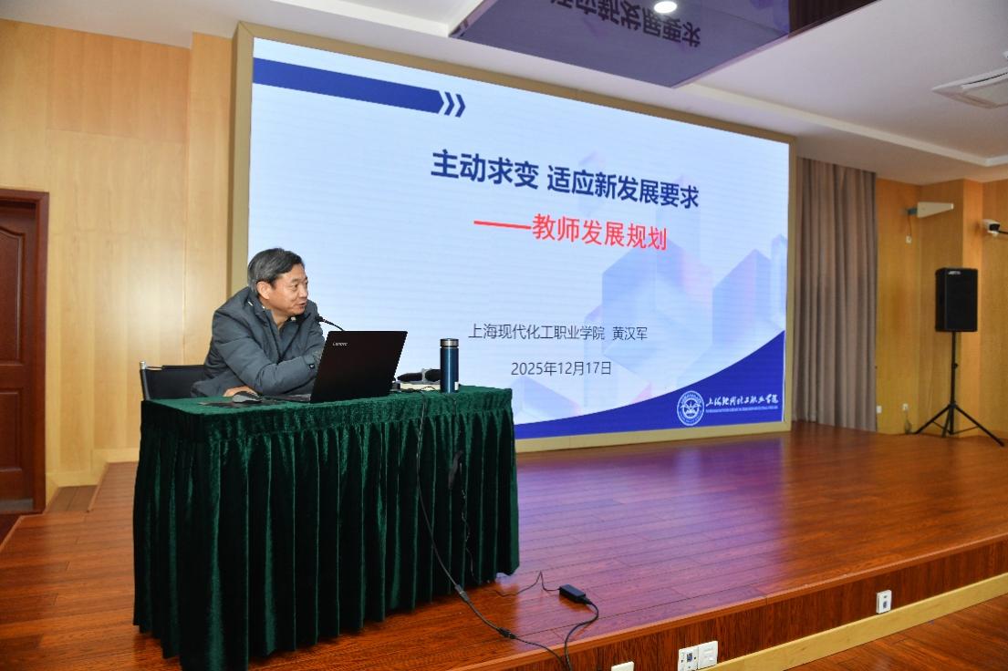 为持续助力青年教师明晰职业发展路径,夯实成长根基,12月17日在多功能厅开展第二届优青班理论培训第4讲。副校长黄汉军以《主动求变 适应新发展要求——教师发展规划》为题授课,全体优青班学员参加本次培训。