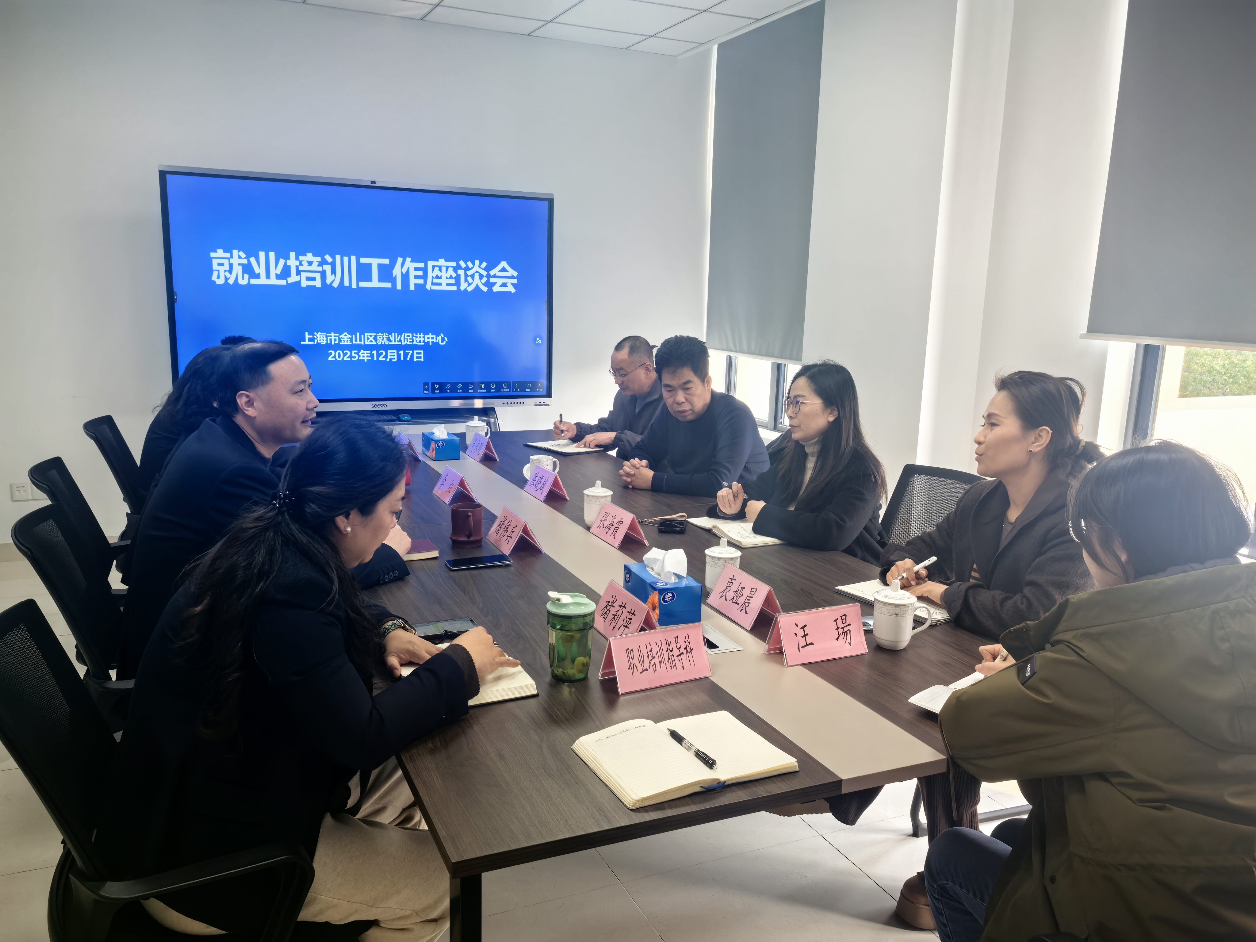 12月17日下午,校长陈晓斌、副校长张海霞率招生就业办及教务处相关负责人,赴上海市金山区就业促进中心,共同召开就业培训工作座谈会,旨在深化校地合作,助力我校毕业生“快就业、好就业”。金山区就业促进中心主任褚伟兵及就业、培训相关负责人热情接待并参与座谈。