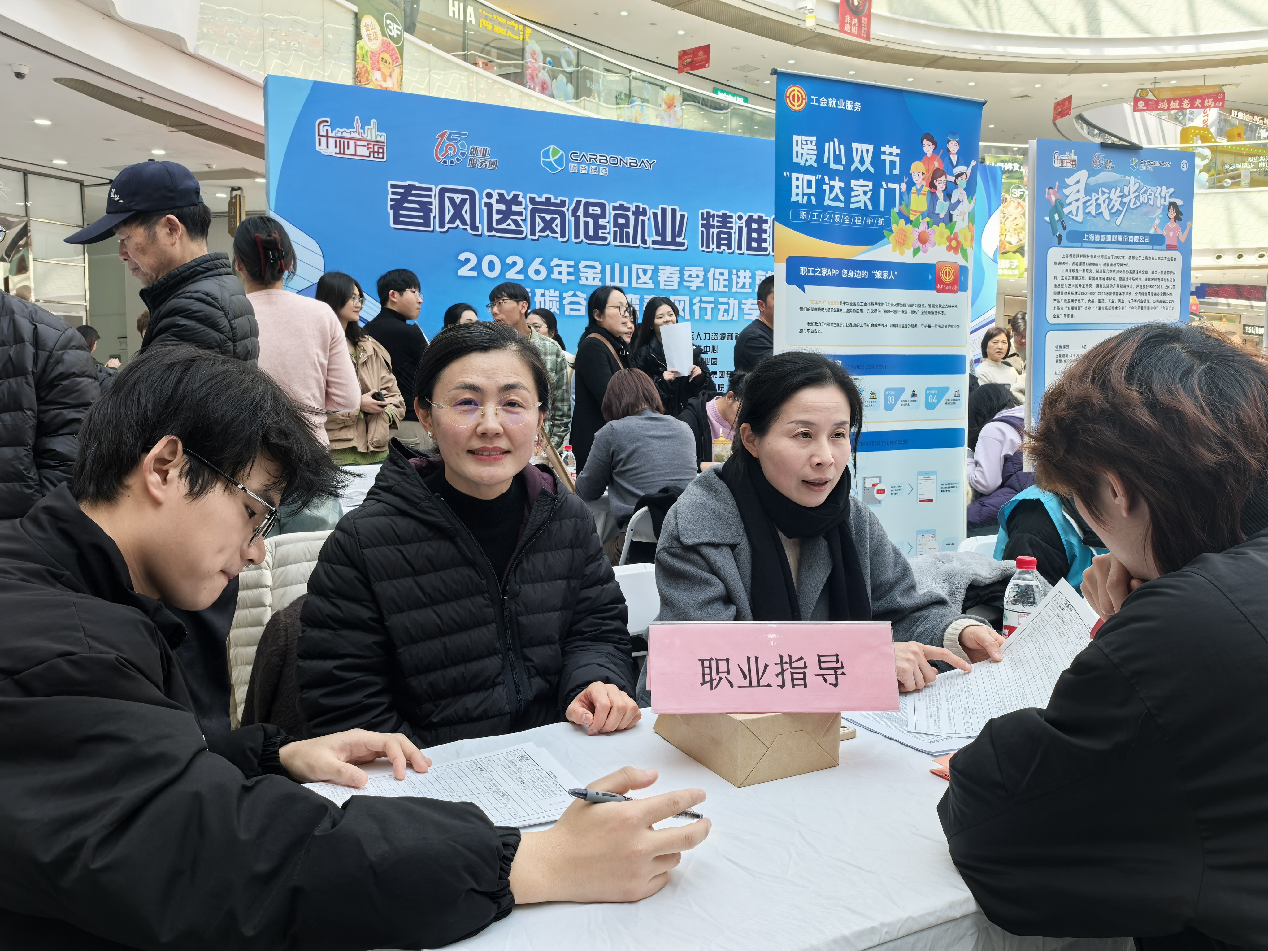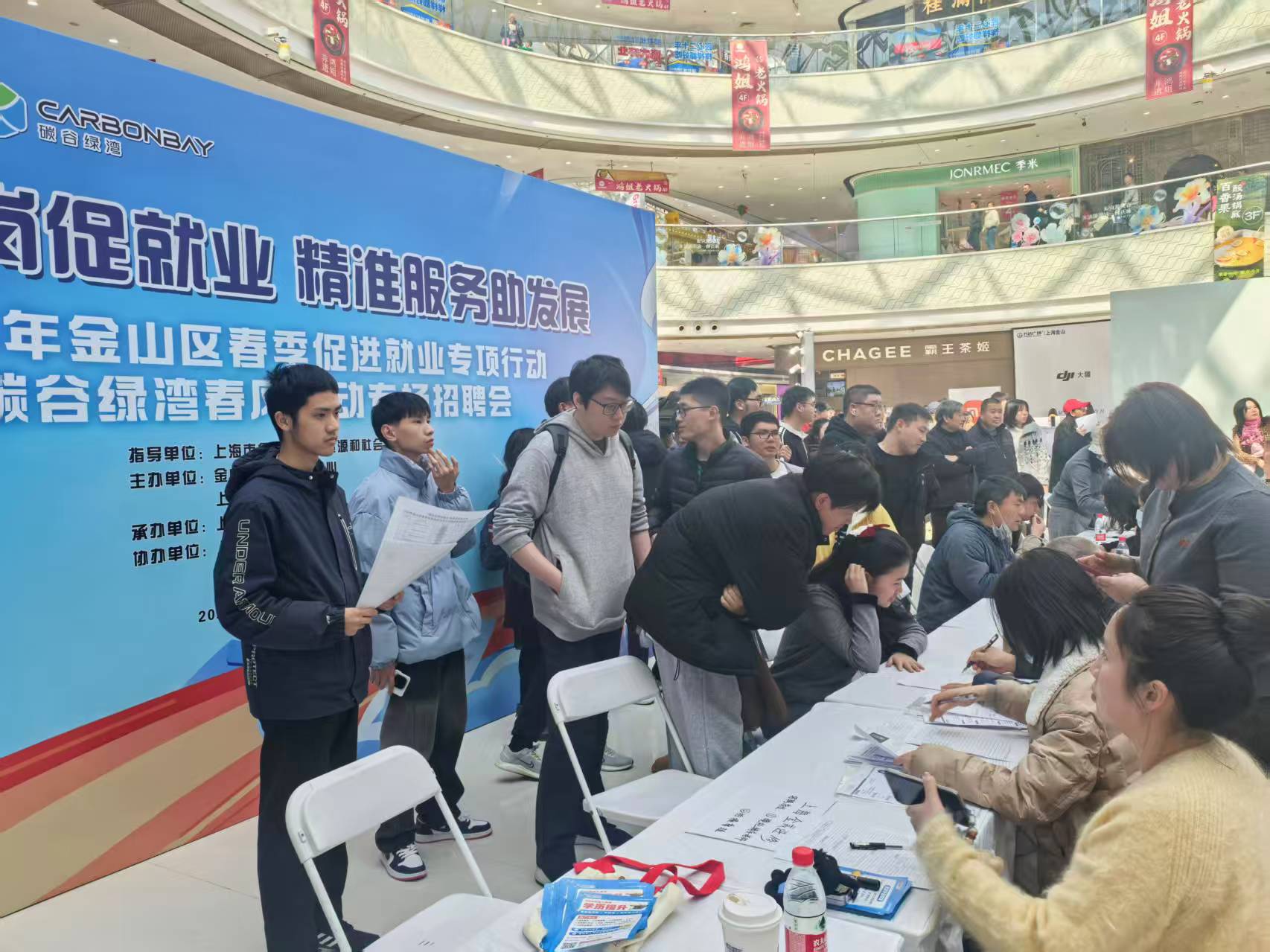 3月14日下午,由金山区就业促进中心和上海碳谷绿湾产业园联合主办,上海现代化工职业学院与上海金山万达广场商业管理有限公司共同协办的“春风送岗促就业精准服务助发展”金山区2026年春季促进就业专项行动暨碳谷绿湾“春风行动”专场招聘会,在金山万达广场顺利举行。学校招生就业办牵头组织23级和24级高职学生前往现场,参与此次求职实践活动。