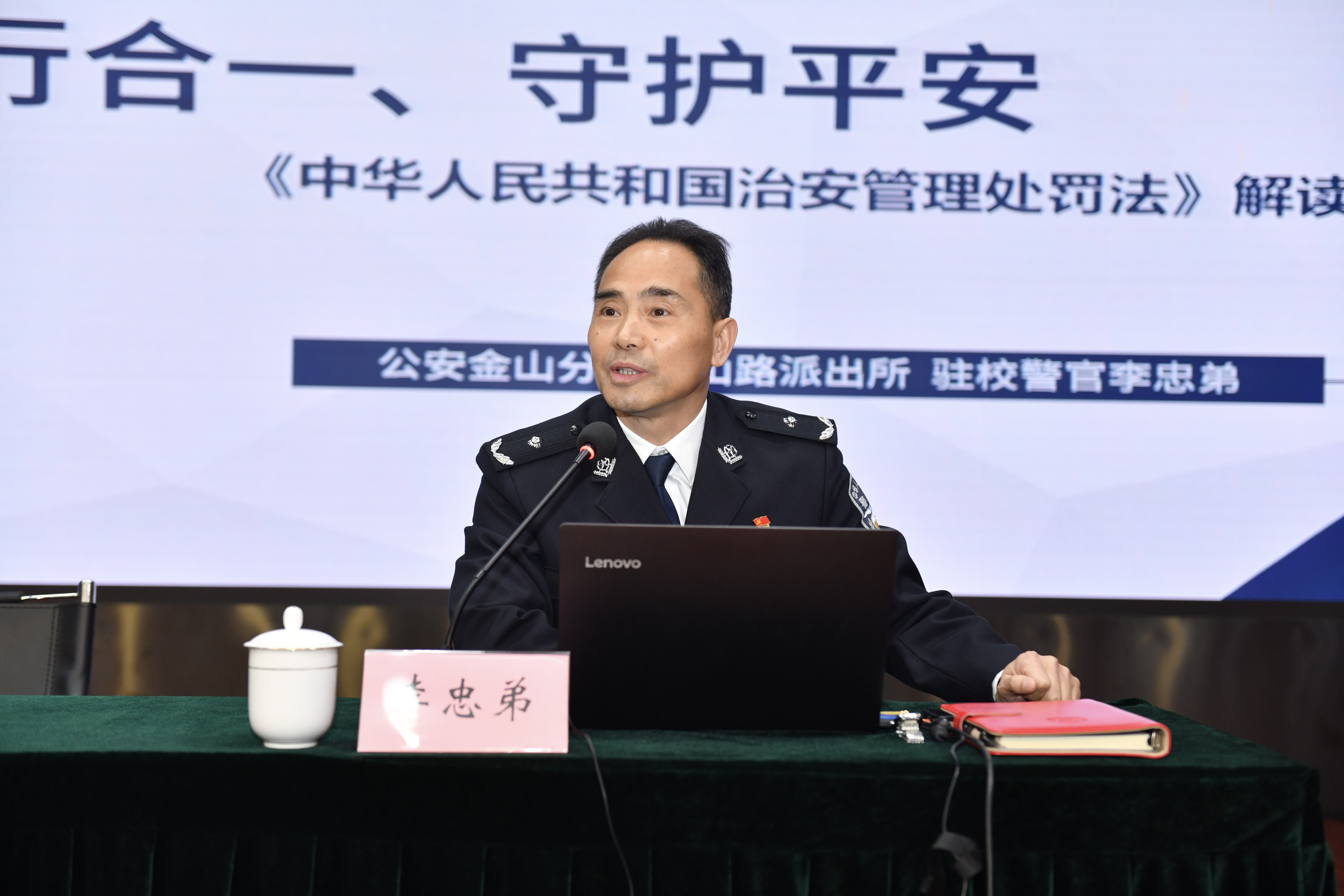 李忠弟警官围绕新法修订背景与核心亮点,结合校园安全实际,展开了深入浅出的讲解。他介绍,此次修订是《治安管理处罚法》2006年实施以来的首次“大修”,新增30条规定,修改幅度大、针对性强,既强化了治安管理力度,也彰显了法治温度。结合我校师生日常学习生活场景,李警官重点剖析了三大与校园密切相关的修订要点:一是明确未成年人违法惩戒红线。针对低龄未成年人违法犯罪突出问题,新法明确规定,对情节严重、影响恶劣,或一年内二次以上违反治安管理的未成年行为人,可依法执行拘留,有效遏制了个别未成年人利用年龄身份“恶意免罚”的现象,为校园安全筑牢法治防线。二是强化校园欺凌协同治理责任。新法专门增设校园欺凌治理条款,将学生欺凌治理纳入公安职责范畴,明确公安机关介入责任,同时强化学校主体责任与报告义务,明确学校需承担连带责任,明确“校园绝非法外之地”,要求学校建立主动防控、及时报告的校园欺凌治理机制。三是规范无人驾驶航空器飞行管理。针对无人机行业迅猛发展中出现的“黑飞”“乱飞”等威胁公共安全的乱象,新法新增相关处罚条款,明确低空飞行无人驾驶航空器的违规行为界定与处罚标准,为校园及周边低空安全提供了法律依据。李警官强调,新修订的《治安管理处罚法》既是约束违法行为的“紧箍咒”,更是保护公民合法权益的“护身符”,呼吁广大师生主动学法、懂法、守法、用法,自觉抵制不良行为,共同守护平安和谐的校园环境。