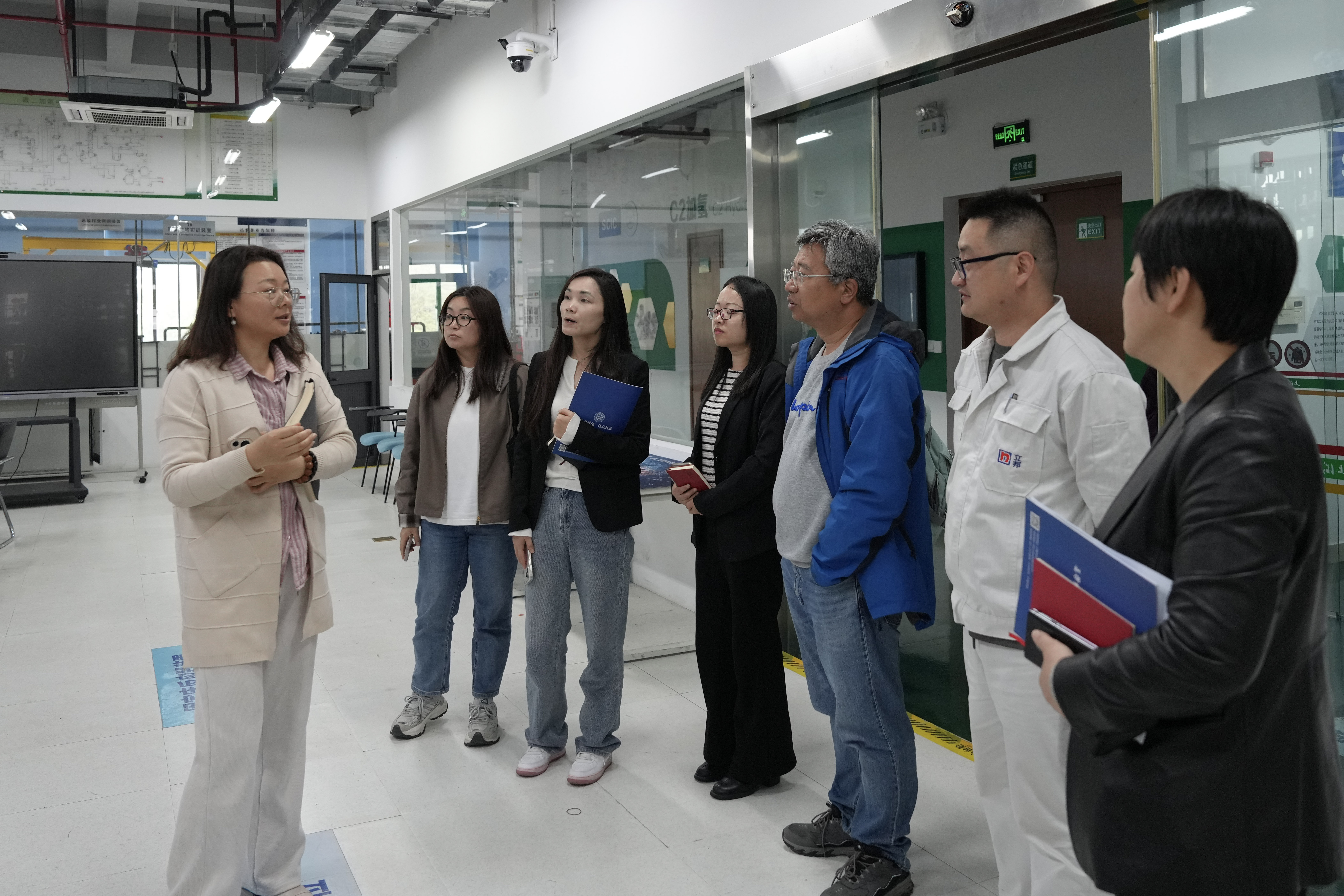 会后,董晓丹一行实地参观了学校化工综合实训大楼,实地查看实训场地布局、设备配置与安全管理情况,详细了解实训教学开展、产教融合落地及学生实践培养等相关工作。