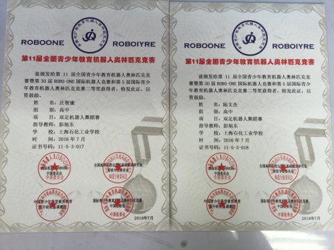 2016年7月22至26日,2016全国青少年机器人奥林匹克竞赛如期在大连理工大学举办。我校机器人社团有幸在类人型机器人舞蹈项目上进行全国赛的角逐,经过激烈竞争,取得了全国中学组二等奖的成绩。