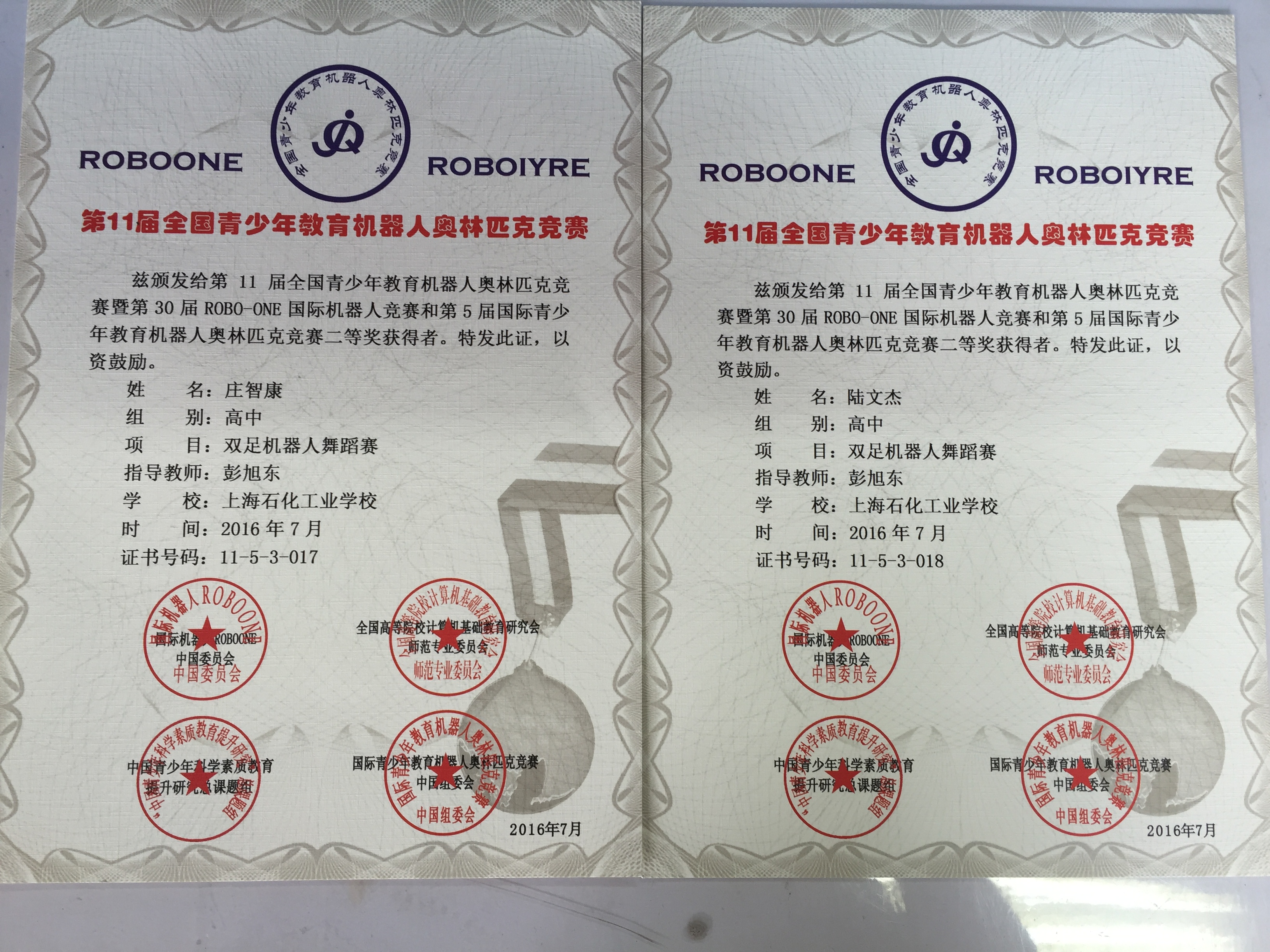 我校学生在2016全国青少年机器人奥林匹克竞赛中荣获二等奖