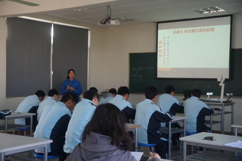 借助信息化手段有效解决教学难点、重点是本次展示课的亮点,三项任务设计由浅入深、由易及难,符合学生学习规律。教师严格把关学生操作的正确性、安全性与熟练度,适时鼓励学生勇于表达自己思想,勤于动手、善于思考,着重提升学生职业素质。取自于企业检测场景的情境视频导入,经过制作的视频简短而直观,体现汽车企业检修的真实情境;利用微课帮助学生完成自学、实践环节,成效明显;通过学生实践操作、填写工单等环节,强化学生动手操作能力;鼓励学生展示,交流成功经验,提高学生语言表达能力;依据师评、组内互评、自评进行综合评价,充分体现了以学生为中心的教学思路,顺利地完成了教学内容六个环节的实施,及时、准确指导了学生在操作过程中的失误,引导学生探究交流发电机“调节电压”这一功能,从而学会电压调节器的结构与功能,学会操作电压调节器的检测方法,达成了较好的教学成效。