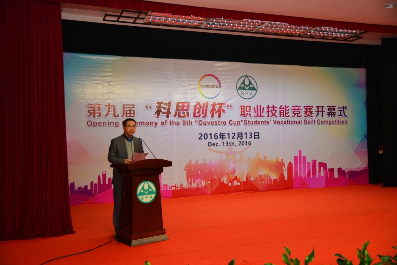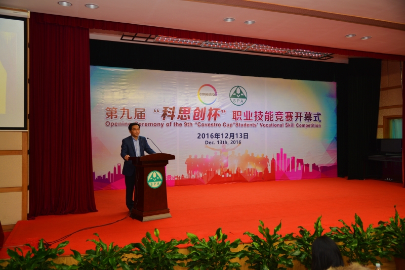 施洛奇博士宣布第九届“科思创杯”学生职业技能竞赛开幕。他说,科思创与学校的合作在职业教育界起到了很好的典范作用,很多学生毕业后来到科思创公司,担任实验室分析员、一线操作工、办公室助理甚至是中层副经理的工作,通过校企合作的平台,学生有了展示专业技能的机会。同时,施洛奇博士表示,期待校企双方在职后员工培训等方面开展进一步的合作。