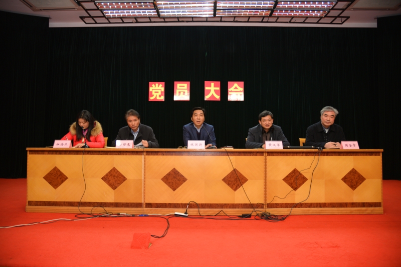 为学习贯彻十八届六中全会精神,回顾总结本年度党委工作, 12月29日下午,我校召开党员大会。校党委书记林国新,校党委委员、副校长黄汉军,党委委员、工会主席孙曙光、校党委委员、纪检监察室主任周金章,党办主任杜海燕出席会议。