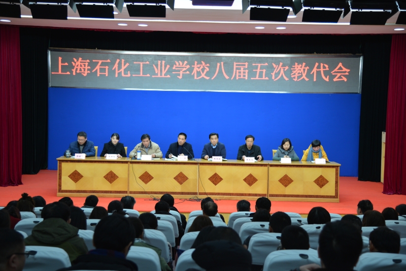 上海石化工业学校教职工大会暨八届五次教代会扩大会议于2月13日隆重召开,大会由校工会主席孙曙光主持。全校教职工参加会议。