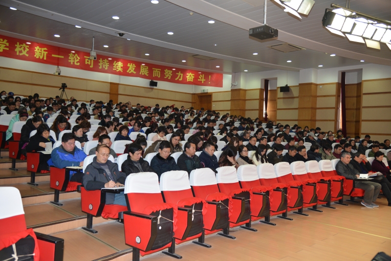在上午举行的教职工大会暨八届五次教代会扩大会议上,全体教职工听取校长高炬作《凝心聚力求实创新 再创学校发展新辉煌——2016~2017学年第二学期学校工作要点(征求意见稿)》报告。高校长首先回顾了十项寒假工作,对寒假期间依然坚守在各自岗位上并默默奉献的部门领导和教职员工表达最诚挚的谢意。在对《2016~2017学年第二学期学校工作要点》的解读过程中,高校长将长达13页的文件凝练为“一项工程”、“两项策略”、“六项建设”和“十八项目标”,重点明确、方法科学、目标鲜明,任务清晰,为大家指明了前进的方向,并鼓励全体教职员工撸起袖子加油干,为学校的长足发展添砖加瓦。接下来全校教代会代表听取校长高炬作《2016年财务工作》报告。