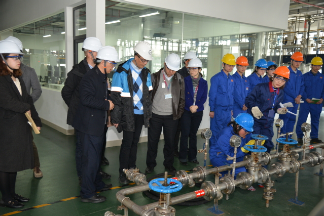 在高炬等校领导的陪同下,陈耘一行参观了数控实训大楼、赢创实训中心、科思创实训中心、机电楼和化工综合实训大楼,双方就拓展校企合作新思路、新领域展开进一步交流。