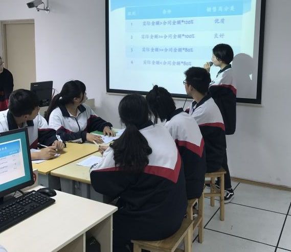 在本次课中,王老师根据公司销售部门的组织结构引入了小品,通过角色扮演法让各销售组长了解需要完成的工作,并明确各组长的职能。小组讨论体现了“学中做,做中学”,以学生为主体的教学理念。但同时,在教学过程中也存在需要改善的问题,在小品表演中,学生描述不清楚导致课程内容导入欠缺;在时间把控上有所不足,导致拖堂;学生答题操作完成后,应及时给予评价。