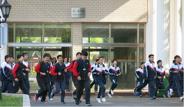 学校领导历来重视学生的安全教育,学校的安保部门对演练也是提前做足了功课:制定预案、安排人员、规划路线、警示提醒,并得到了校学生处和其他部门的大力配合,演练从开始到结束非常顺利。同学们在班主任的带领下,快速、有序地按既定的路线,安全疏散至学校操场进行集合点名。