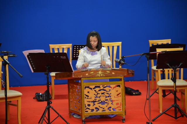 开场曲目为经典传统民乐合奏《步步高》,曲如其名,旋律轻快激昂、层层递增,节奏明快、音浪叠起叠落、一张一弛,音乐富有动力,给人以奋发上进的积极意义,震撼了全场的观众,全场报以热烈、持久的掌声。演奏家们带来的民乐五重奏《欢乐的夜晚》、《天山之春》,色彩明亮,旋律带有强烈的新疆民间舞曲风格,热情奔放、一气呵成,形象地描绘了维吾尔族人民在天山脚下敲起手鼓、载歌载舞的欢乐热闹场面。民乐合奏《茉莉花》、《紫竹调》是中国著名的经典民乐曲目,熟悉的旋律、丰富的舞台表现给大家以美的享受,让同学们深刻认识到了中华传统音乐文化的博大精深。