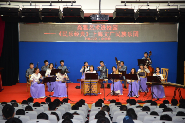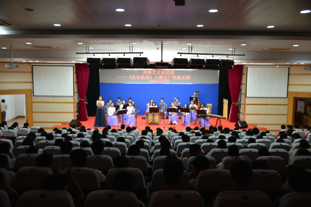 2017年5月24日星期三下午14:30,第七届校园文化艺术节——高雅艺术进校园之“民乐经典专场音乐会”,在我校B区报告厅隆重举行。为了丰富校园艺术文化,让校园生活更加丰富多彩,继上次的上海轻音乐乐团来校演出取得成功后,学校又引入了民乐专场,来自上海文广民族乐团的演奏家们为老师和同学们带来了精彩绝伦的高雅艺术盛宴。