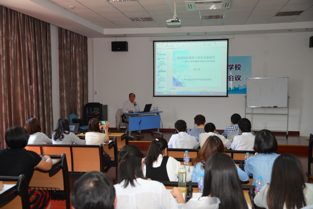 本次报告的主题是《职业院校教师专业化发展研究——兼论双师型教师内涵及其培养途径》。雷正光教授从三个亟待解决的问题入手,即:(1)What——什么是教师专业化发展(2)Why——为什么要实施教师专业化发展(3)How——如何实施教师专业化发展,以及如何构建双师型教师队伍,逐一为大家讲解。