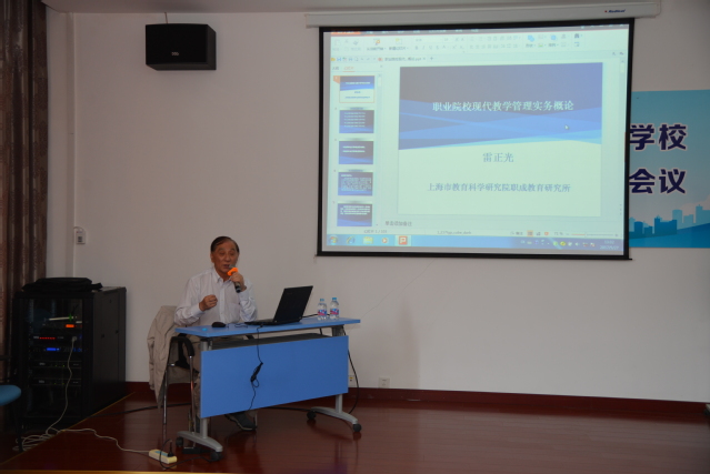 2017年5月27日下午,在我校南区新实训大楼2楼的报告厅内,来自上海市教育科学研究院职成教所的雷正光教授为我校的青年骨干教师带来了一场精彩的报告。雷正光教授是中国职业技术教育学会课程开发研究会副主任,同济大学职教学院兼职教授,主要从事职业教育课程理论与实务研究和教学论研究工作。他曾在德国进修职教课程理论与实务研究三年,在中德职教比较研究与职教课程论、教学论研究等方面取得大量成果,多次在全国和上海市优秀成果评审中获奖。因此,对于这次难得的学习机会,全体青年教师都高度的重视和期待。