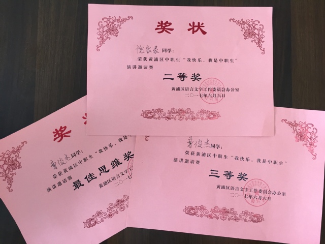 “生命为舟,以意志作浆,让青春作证吧!多年以后,当我们回首,我会说:中专校园——那是我青春岁月里一个无悔的坐标!每一片天空,都会有远方,每一个星座,都会放光芒。我相信每个人都是一颗星,我也是,星点的微光虽不能与皓月争辉,却也给天空多一分皎洁,多一分美丽。让我们不忘初心,点亮青春,做一名幸福快乐的中职生!”这是来自于选手内心的呐喊,也是我们每一位中职学生追求的目标。
