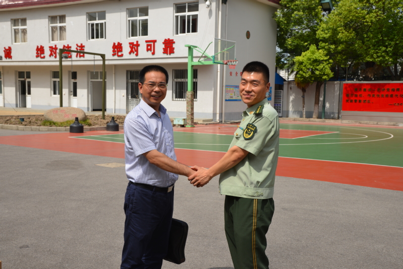 7月31日下午,我校高炬校长冒着高温酷暑,率工会主席、综合办主任、安保科长一行赴上海武警二大队九支队驻地,为部队官兵送去节日的问候和祝福并开展座谈交流,畅叙军地鱼水深情,共谋军地建设发展。