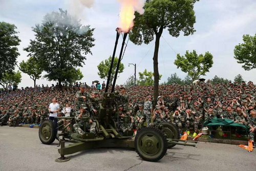 首先,同学们观看了红队蓝队的精彩模拟对抗,还有炮兵发射炮弹击退海上敌军船只等逼真的军事模拟表演。