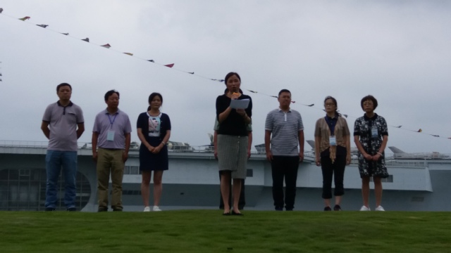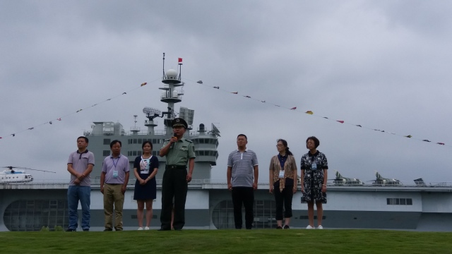 2017年9月11—17日,为期五天的2016级学生东方绿舟国防素质教育结营式在航空母舰旁举行,金山区教育局综教科副科长沈兰容和各校领队教师以及全体同学参加了结营式。