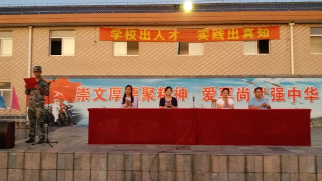 2017年9月17日下午18:00,我校在大东海青少年基地中国青少年军事训练营隆重举行2017级新生军训入营仪式,入营仪式由团长张俭主教官主持。