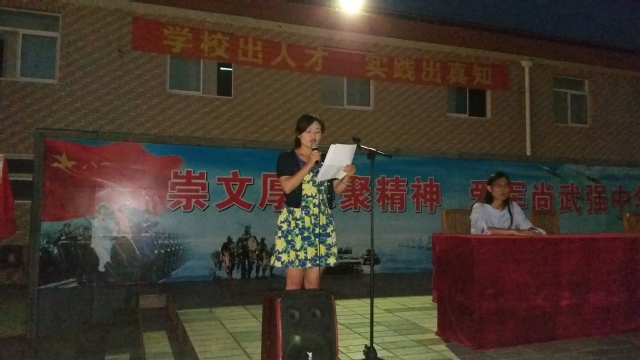 学生处主任杜海燕代表学校对新生的到来表示热烈的欢迎,对同学们提出了几点希望:第一,要发扬不怕苦,不怕累的精神。要有吃苦的准备,要有战胜因难的信心。以饱满的精神和乐观的态度参加军训,克服娇气,不怕苦,不怕累,战高温,斗酷暑。腰酸腿痛不叫苦,流血流汗不流泪,严格训练,力争取得优异的军训成绩。第二、要发扬集体主义精神和爱国主义精神,军训就是要培养我们树立团结奋斗的观念。培养为集体增光添彩的意识。克服个人主义、小团体主义的不良意识。在军训中做到遵纪守法、团结互助、弘扬集体主义精神,爱国主义精神。第三、要认真上好军训这一课,做到尊敬教官,服从命令,一切行动听指挥。军训中要向教官学习军事技能,更要学习军人的高尚品质,雷厉风行的作风、严明的组织纪律,为新的学习、生活打下良好的基础。最后,祝同学们学习进步、健康成长!预祝军训任务圆满地完成!