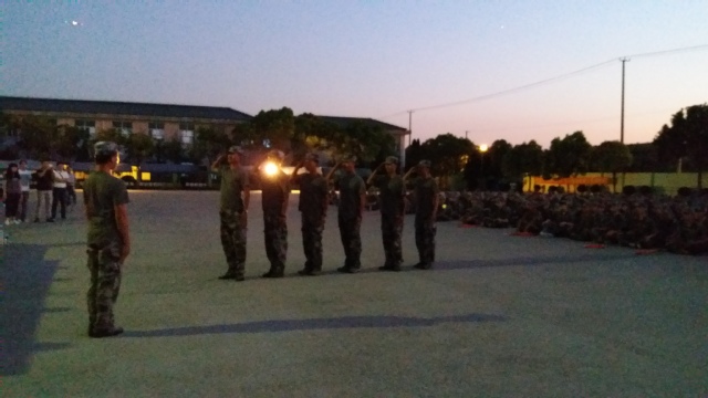 首先,举行升国旗、奏国歌,升营旗、校旗,奏团歌仪式之后,由教官为全体营员进行队列示范,同学们看了示范,已经按捺不住激动的心情,对完成军训任务,塑造自己的新形象充满了信心。