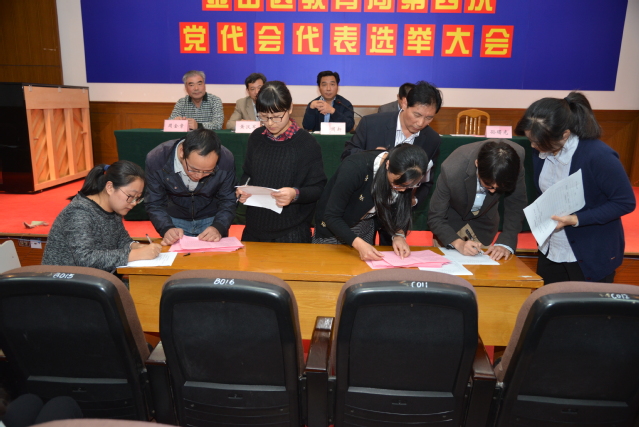 经过紧张的验票计票,大会选举产生了出席区教育局第四次党员代表大会的代表。以姓氏笔画为序,他们是:朱文俊、江四龙、李娟、李雅娟、林国新、俞婕、高炬、傅强、潘志东。