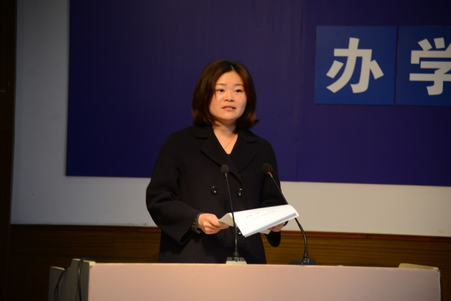 我校学生处主任杜海燕介绍我校一年来学生管理情况,主要有:继续完善德育机制,和学生管理制度;完善行为规范教育,加强学生常规教育;注重学生实践性教育,推进中华传统文化教育和社会主义核心价值观教育,开展系列活动,提高学生爱国情怀及责任意识。
