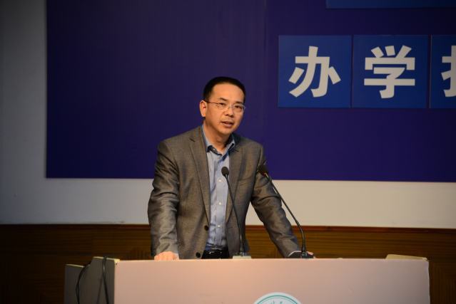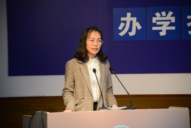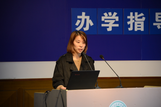 我校教务处副主任张海霞介绍学校教学工作,我校在教学方面做了很多工作,优化教学实施方案,400多门课程已完成80%;举办教学法比赛,提升教师技能;提升国际合作办学,继续推进国际化办学进程。她还介绍今年考试改革制度,聚焦上海中本转段考试,对三校生高考优异成绩表示肯定。