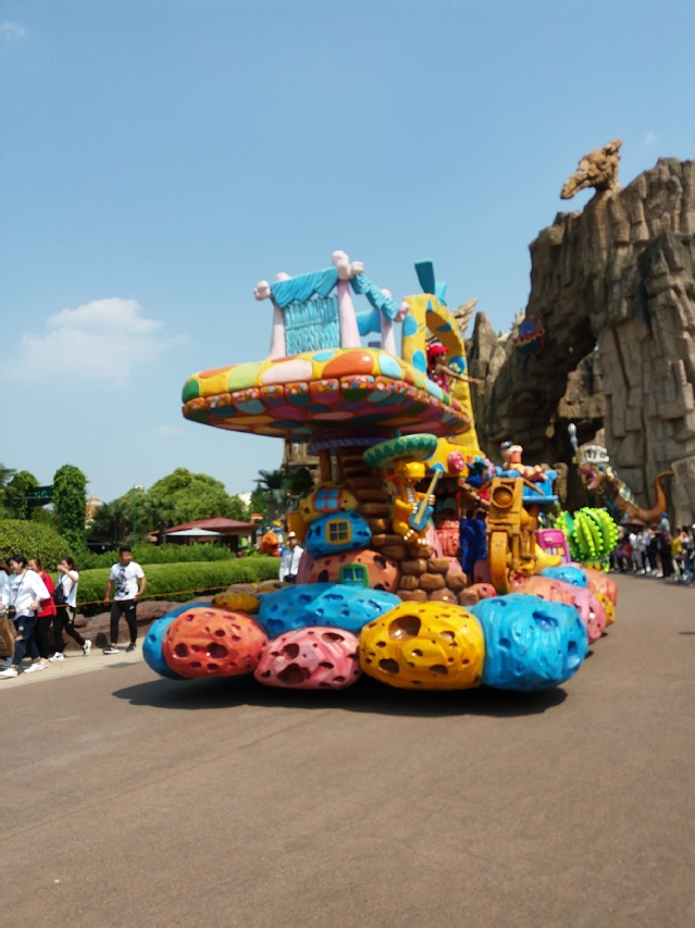 绚丽的5月,盛大的花车巡游作为压轴戏。嘹亮的军号拉开了花车巡游的序幕,由英武的王国卫士开道,八辆造型奇特、色彩缤纷的花车缓缓而来。盛大的巡游带你攀越险峻的峡谷,穿越神秘的雨林,遨游欢乐的海洋,造访原始部落,最后和小恐龙一起抵达充满欢乐的梦幻城堡,每辆花车钱还配有服装华丽、阵容强大的表演方阵与现场游客进行互动,每一辆花车都是一种别样体验。
