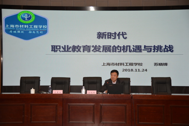 本次师资培训专家为上海材料工程学校副校长苏晓峰;苏晓峰从五个方面讲述了新时代之下的职业教育发展,即职业教育面临的新形势,构建现代职教体系的探索,产教融合、校企合作是职业教育发展的根本,专业建设是学校品牌的关键、师资队伍是学校办学水平的保障;