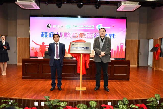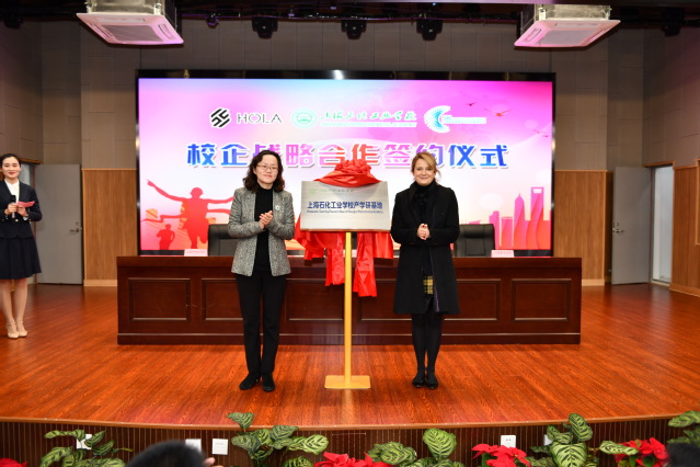 吴颖和Caroline PENARD共同为上海石化工业学校产学研基地揭牌。林国新和周云共同为上海霍兰汽车科技有限公司培训研发基地揭牌。高炬和李霖共同为上海市智能网联汽车创新中心研发基地揭牌。