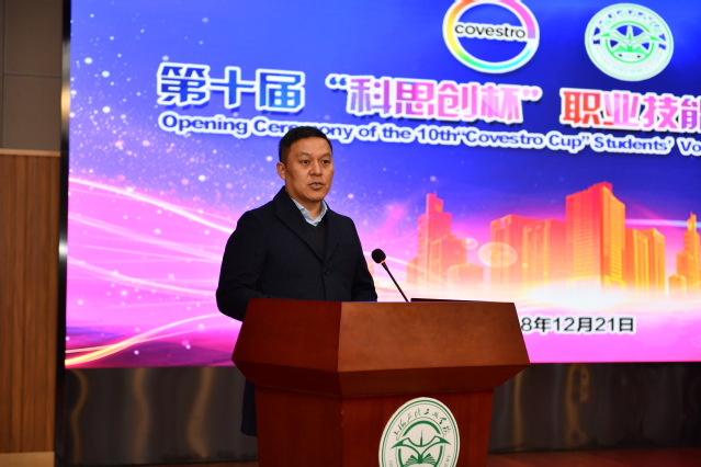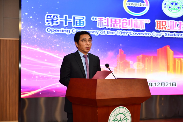 梅冬回顾了科思创公司和学校战略合作的十六年来取得的成果,他说,学生们进入科思创后,凭借专业的知识技能、丰富的实践经验以及百折不挠的坚毅品质,展示出良好的专业风采,有许多人成长为基地的中坚力量。希望在座的同学们珍惜在校时光,增加知识储备,提升技能水平,通过比赛积极进取,奋勇争先,掌握职业技能,收获面对未来的信心和勇气。