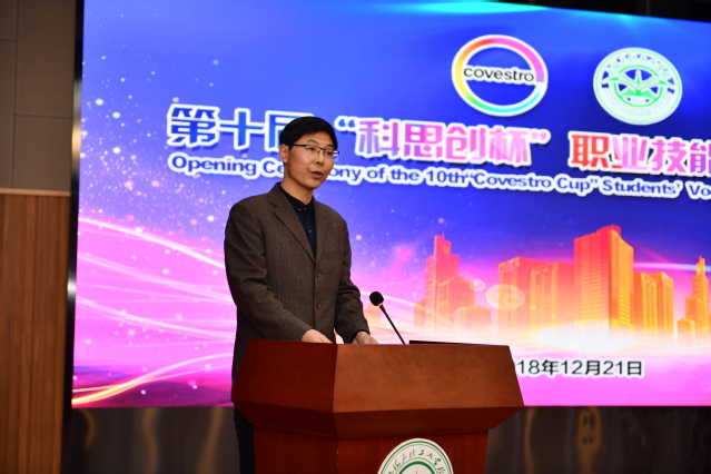 高炬在开幕式上致辞,指出,“科思创杯”职业技能竞赛作为我校与科思创公司重要的合作项目,自2008年设立至今已经成功举办了九届。本届竞赛共设33个项目,涉及通用类、化工类、机械加工类、电工电子类、信息技术类、旅游类、财经商贸类等八个大类。学校本着“关注技能基础、面向全体学生”的方针,各部门精心组织,做好宣传和发动工作,全校各科室、各班级高度重视,充分展现出同学们勇于实践、渴望展示的精气神,凸显“人人重技能、班班有选手”的良好竞赛氛围。