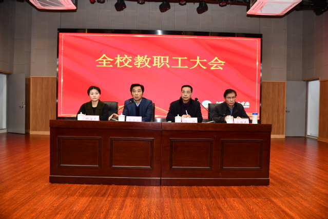 1月18日,我校在会议中心召开全校教职工大会,全体教职工参加了此次会议。党委书记林国新主持会议。