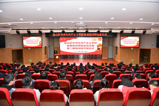 1月19日下午,金山区共产主义学校首期培训班结业仪式暨第二期培训班开班仪式在我校会议中心举行。区教育局党委副书记郑瑛、区委老干部局副局长张锋平、团区委副书记车晨远、教育局团委书记周欣蔚以及全区11所高中、中职学校团组织负责人和全区100名优秀的的高中、中职优秀学员参与本次活动,仪式由团区委学校工作部负责人陈泽娅主持。