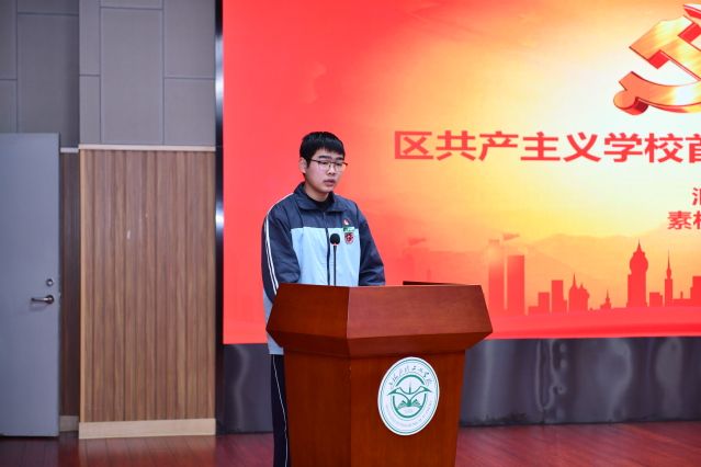 教育局党委副书记郑瑛讲话。她首先代表区教育局党委向精心筹备区共产主义学校的老师与同志们表示衷心的感谢,也向参加第二期培训班的50名优秀青年学生表示热烈的祝贺。她对在座学生提了几点希望。第一,她希望同学们能认真学习党的先进理论,成为青春有理想的人。第二,她希望同学们能努力践行党的先进理论,成为青春有活力的人。第三,她希望同学们能坚持贯彻党的先进理论,成为青春爱奋斗的人。