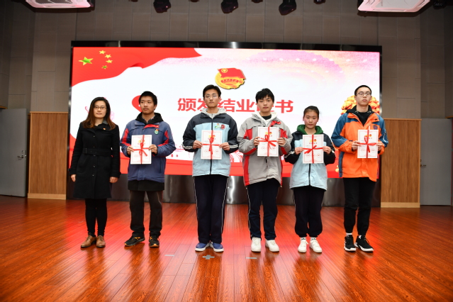 教育局团委书记周欣蔚为首期培训班学员颁发结业证书。
