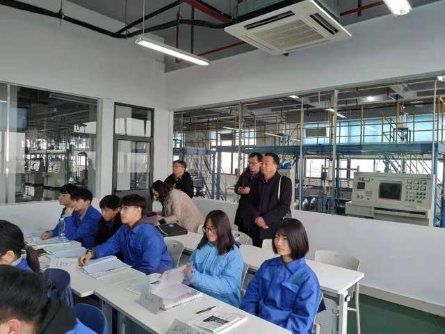 3月6日,平湖市职业中等专业学校校长姚雁、副校长严瑾及化工系负责人姜晶等一行4人来访我校,到南区实训室进行参观,听取了胡迪君老师的AHK专业课程《安装技术》。