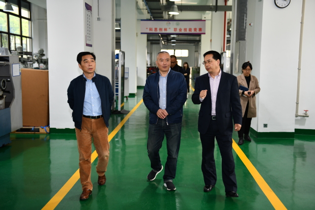在校领导的陪同下,王强一行参观了学校校史馆、化工与人类科普展示馆、跨企业培训中心和数控实训中心。